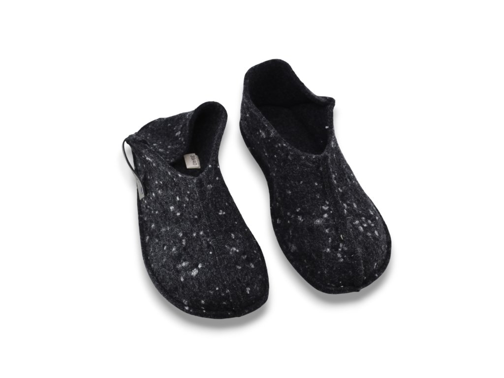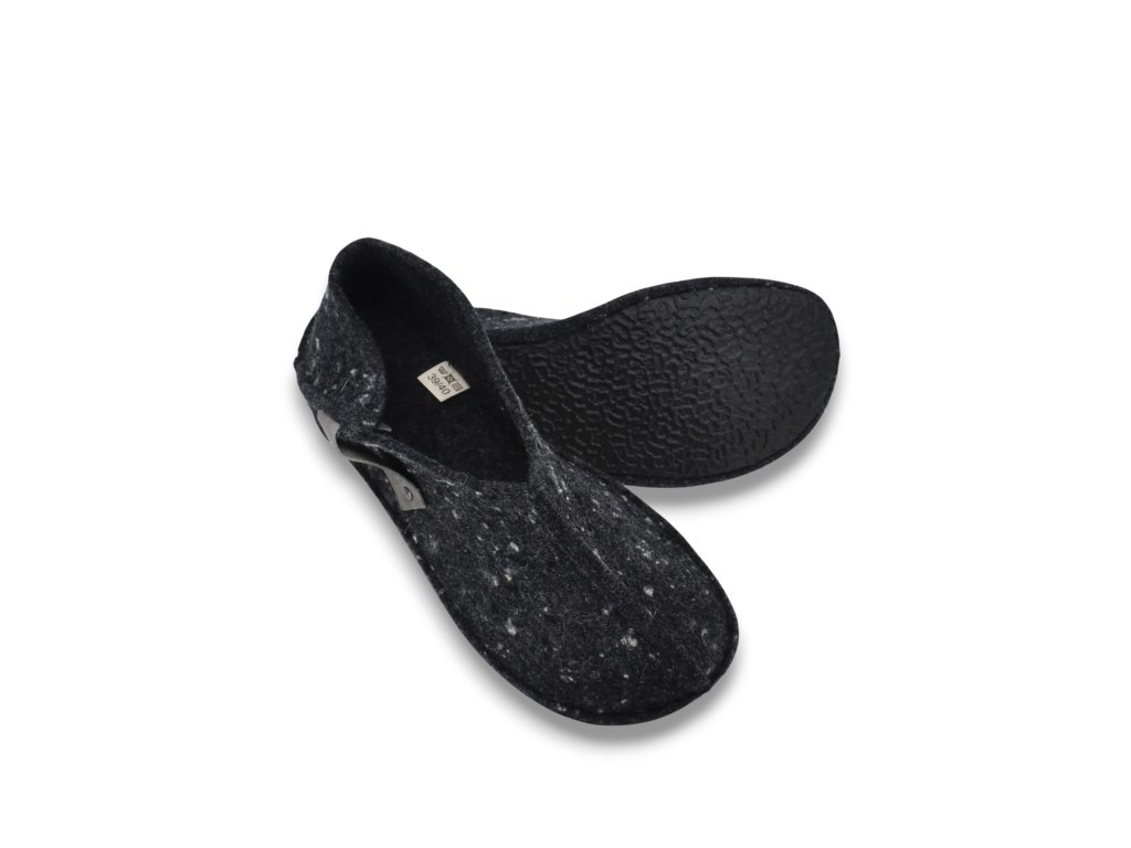Tohkri Wool Black – plstené papuče s pružnou podrážkou